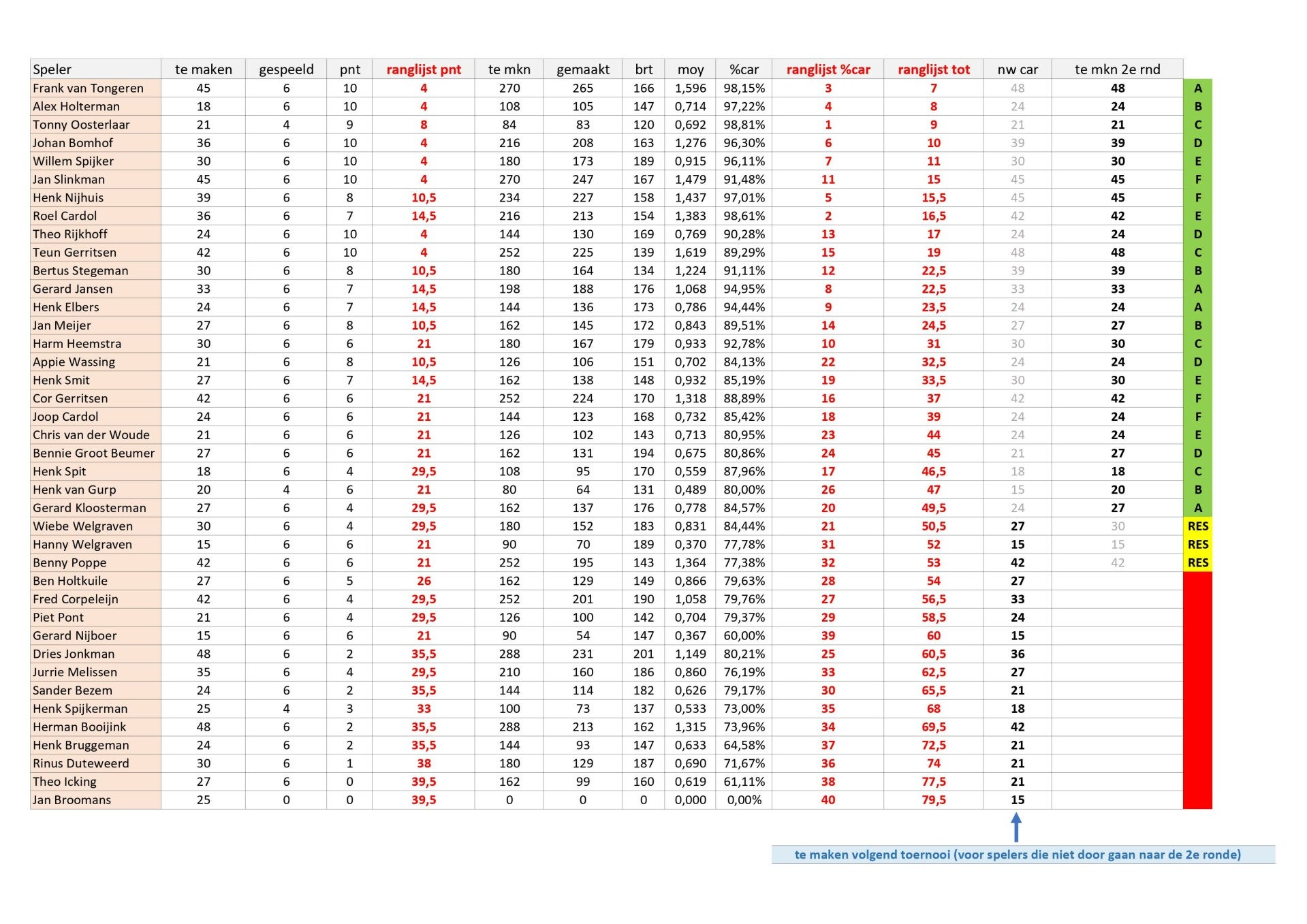 | Naam | Prt | Pnt | Car | Brt | Moy | HS | % Car | % Moy | |